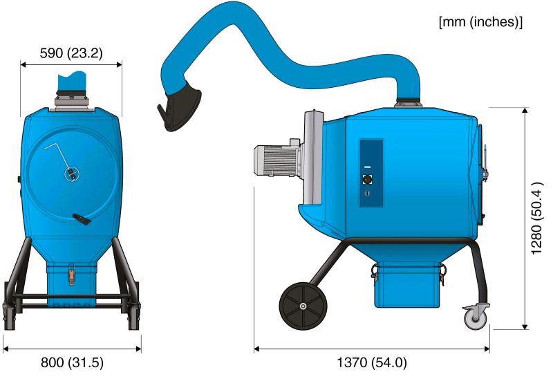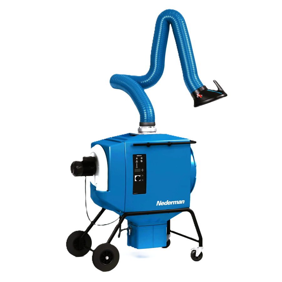 The unit has a filter supervision system which indicates with an audial alarm when the air flow is too low. The unit is cleaned mechanically. An integrated silencer reduces noise from the fan and outlet air. Additional protection from harmful particles is provided if a HEPA filter is installed (optional). FilterBox 10M is available as a mobile unit on wheels or a fixed mount unit.
