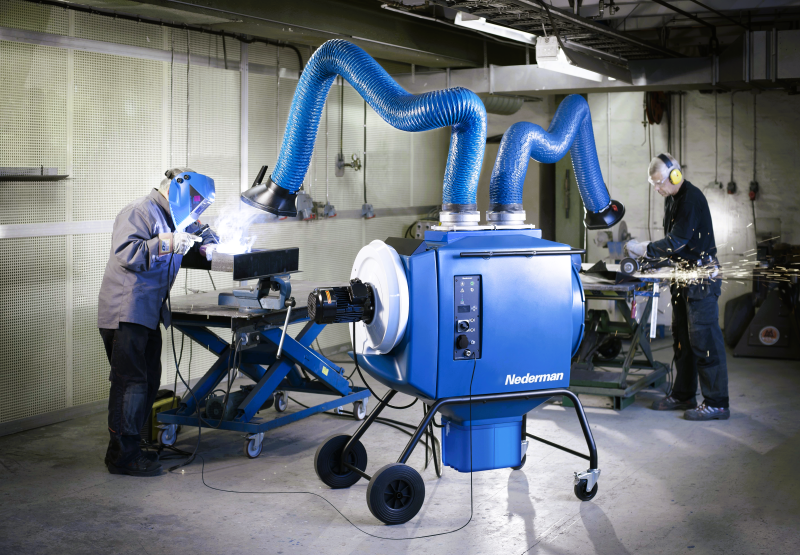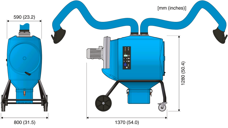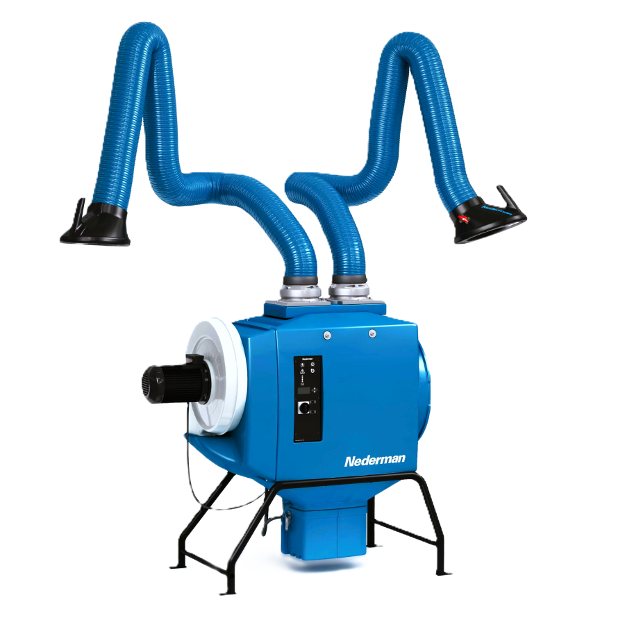 The FilterBox Twin is equipped with two extraction arms and a powerful 2.2 kW (3.0 hp) N29 fan for a maximum air flow capacity of 2 x 850 m³/h (2 x 500 CFM). The FilterBox Twin M is delivered with a manually cleaned Polyester filter and the FilterBox Twin A+ NANO is delivered with an extra large, automatically cleaned nanofiber filter, ideal for frequent welding. The nanofiber media technology utilized in the FilterBox Twin A+ NANO offers significant performance advantages like higher efficiency and surface loading properties which results in more effective filter cleaning and longer cleaning intervals.
