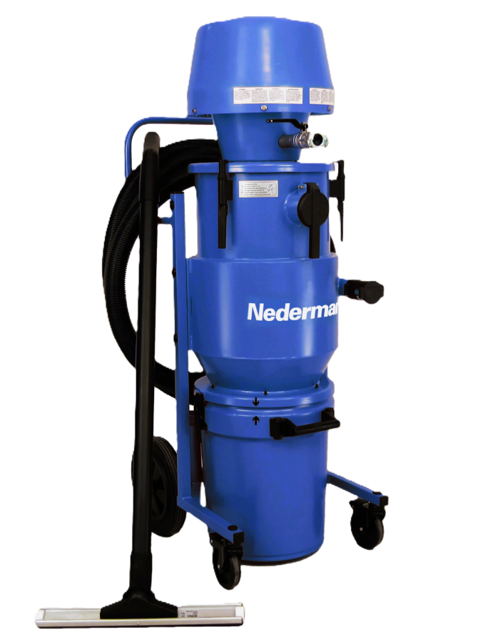 The 216A air powered industrial vacuum cleaner is a powerful and robust dry industrial vacuum cleaner suitable for composite handling industry, building and construction industry and chemical industry handling powder and other dry material such as dusts, grit and granules. Equipped with a HEPA filter.