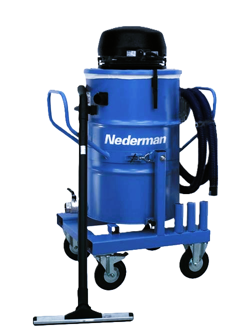 Introducing the 510E model industrial vacuum cleaner, designed to meet the demanding needs of industrial environments. Featuring an electrically powered suction head with three motors, this vacuum is engineered to handle industrial-grade wet and dry applications, excluding combustible dusts. Different nozzle and hose options are available to meet diverse application needs, making it a versatile asset in industrial settings.